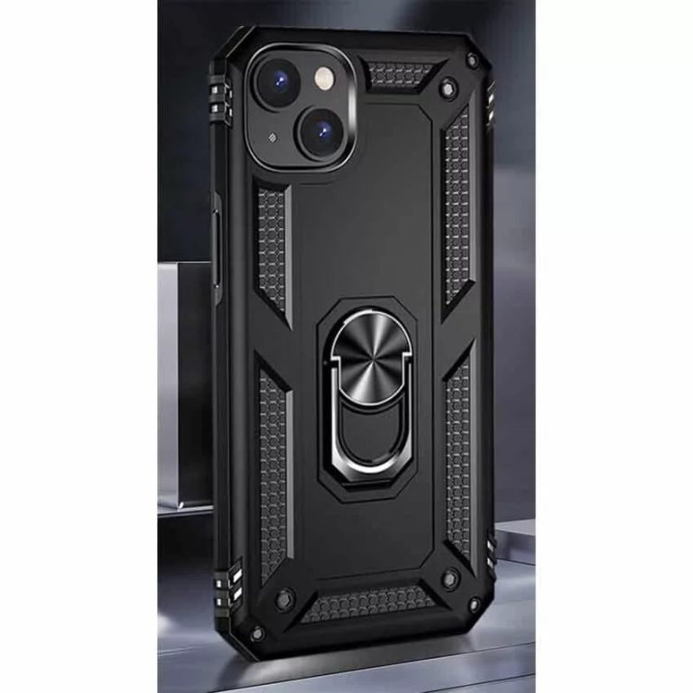 iPhone 15 Hybrid Dual-Layer Armour Case With Magnetic Ring Stand – Black